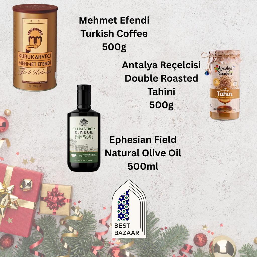 Go big this holiday season with the Christmas Gift Box – Large, a deluxe curation of authentic Turkish delicacies, natural wellness essentials, and gourmet indulgences. Whether for a loved one, client, or yourself, this festive box is a heartwarming gift that speaks to quality, culture, and celebration.